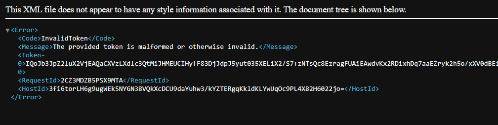 I have uploaded audio and in return received this URL response, but when I try to open in browser. It’s Giving invalid or malformed token error. Similarly when I uploaded Avatar image, it does opens but gives S3 permission denied error (which I know it’s okay)